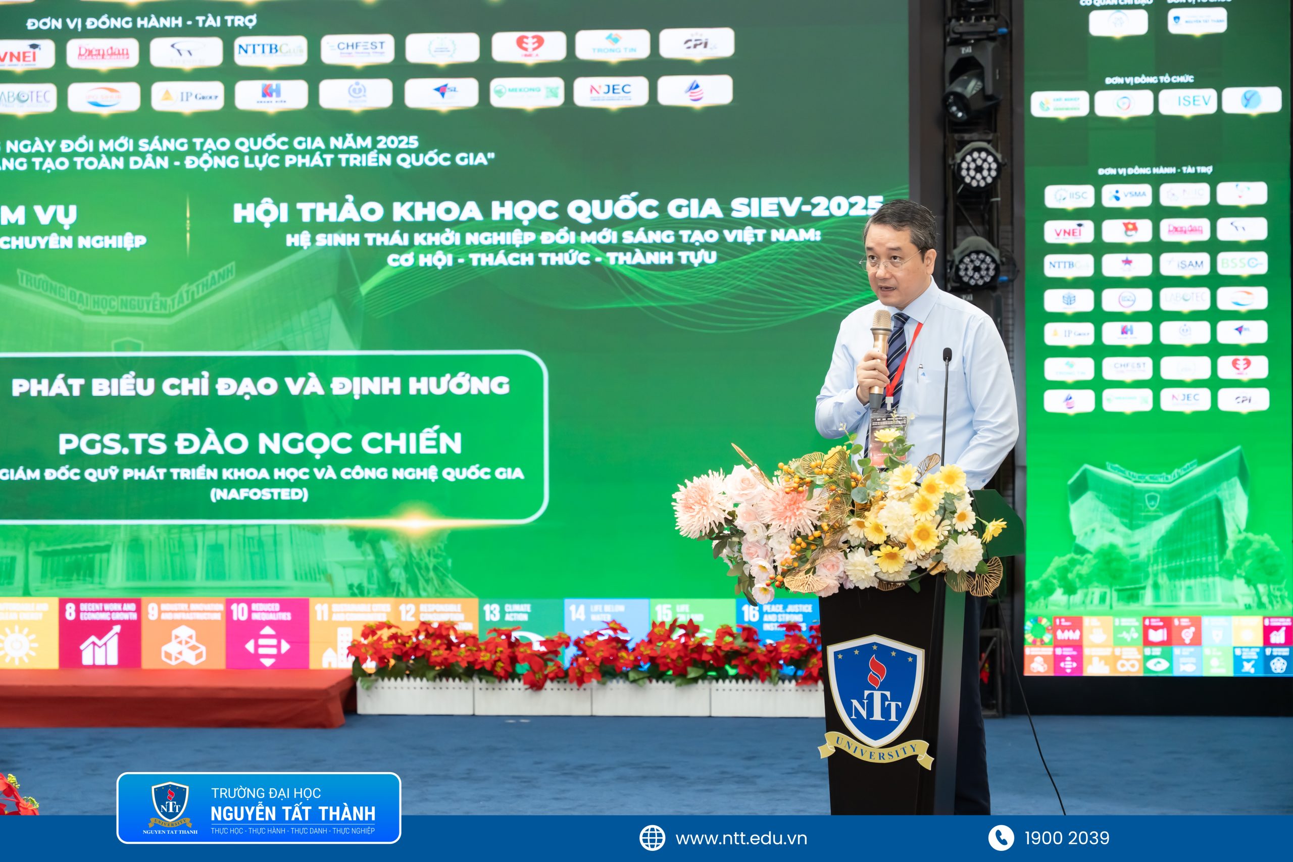 Trong khi đó, đại diện Bộ Khoa học và Công nghệ, PGS.TS. Đào Ngọc Chiến ghi nhận và đánh giá cao những nỗ lực của Trường ĐH Nguyễn Tất Thành trong việc triển khai các hoạt động hỗ trợ khởi nghiệp. Ông đồng thời khẳng định NAFOSTED sẽ tiếp tục ủng hộ các chương trình, nhiệm vụ nhằm phát triển hệ sinh thái khởi nghiệp đổi mới sáng tạo, đặc biệt là đồng hành cùng những đơn vị tiên phong như NTTU.